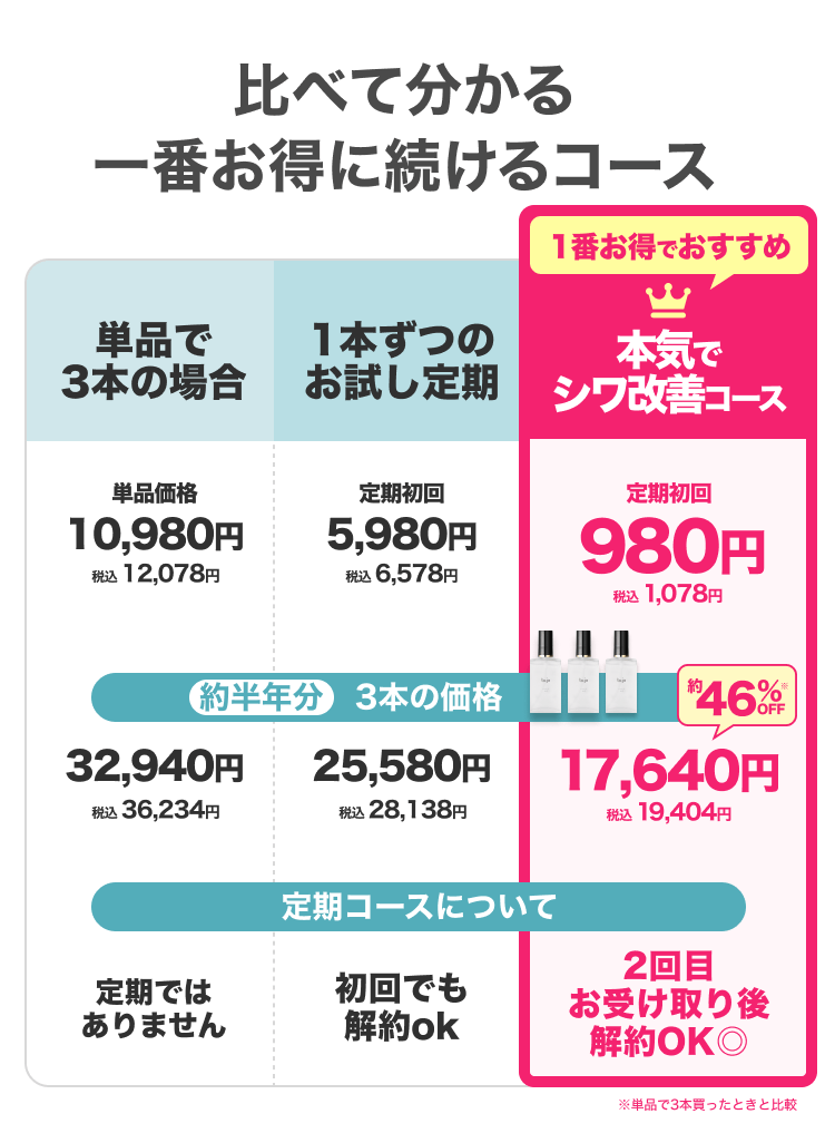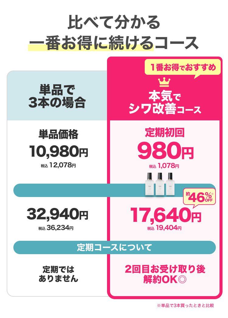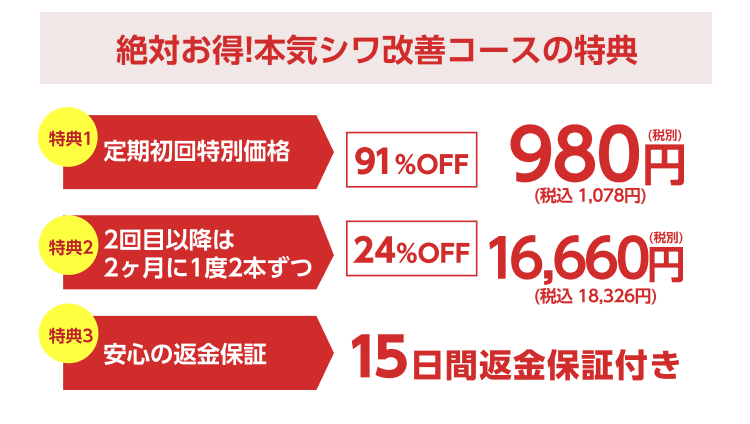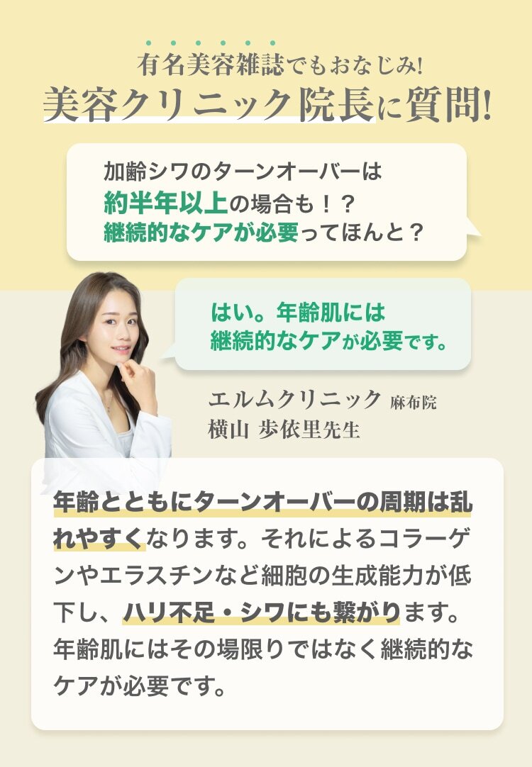 継続するうちに毛穴も目立たなくなった気がして、内側から押し出すようなハリを感じました。シワ予備軍までケアできるとは頼もしいです!1週間ほどで効果を感じたのでさらに継続していきたいです!