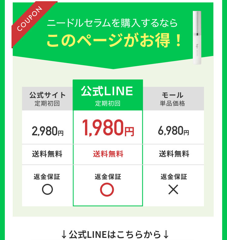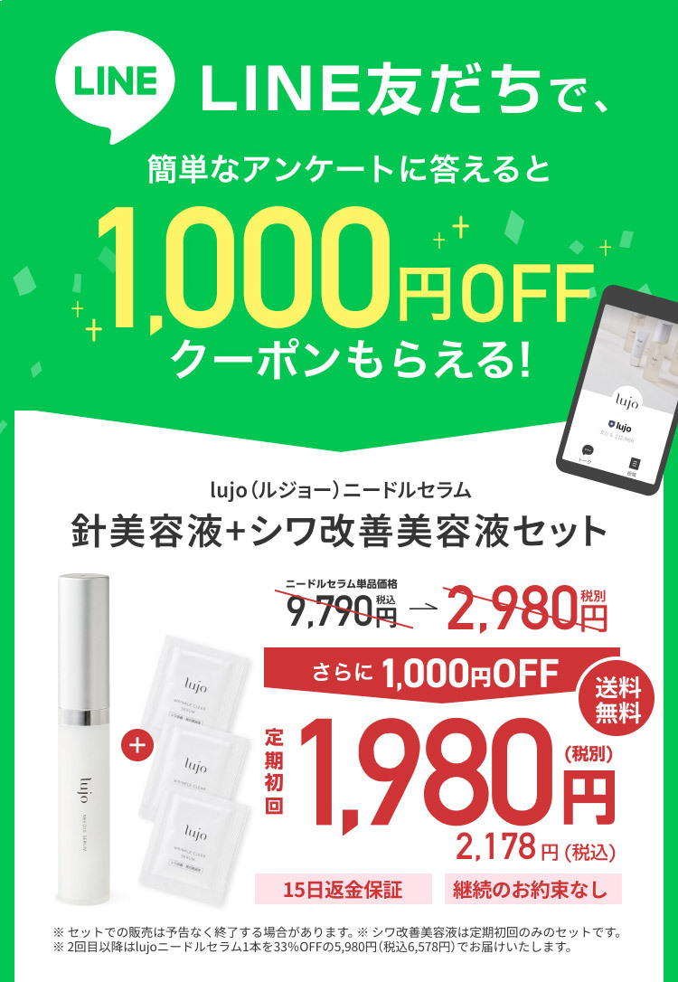lujoニードルセラム1本 9g(1ヶ月分)通常価格9,790円(税込)が定期初回2,178円(税込)でお届け。